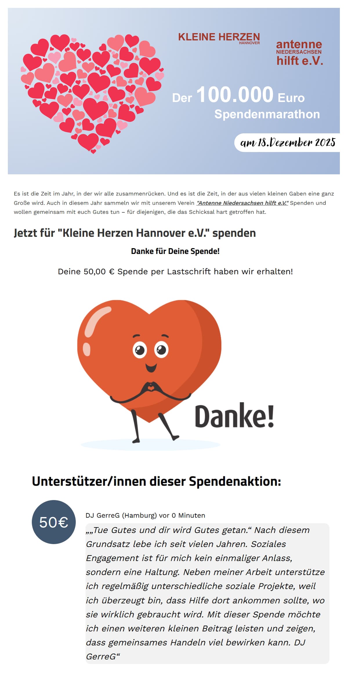 Dass ich solche Aktionen unterstützen kann, verdanke ich auch meinen Kundinnen und Kunden, die mich auf ihren Feiern, Hochzeiten und Veranstaltungen buchen. Durch dieses Vertrauen und die gemeinsame Zusammenarbeit wird es mir überhaupt erst möglich, soziale Projekte wie dieses regelmäßig zu unterstützen. Dafür möchte ich an dieser Stelle ganz bewusst Danke sagen.